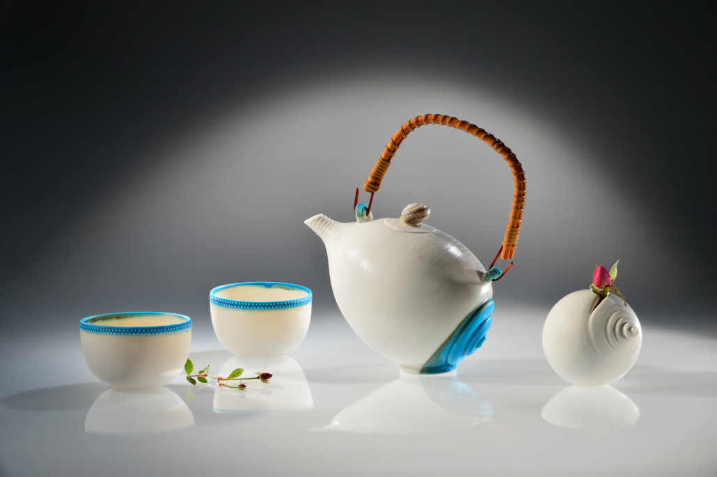Sea tea set with shell vase