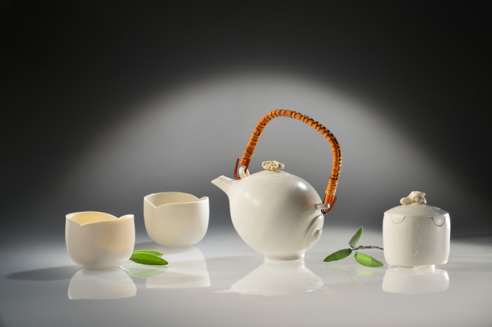 White tea set with sugar bowl